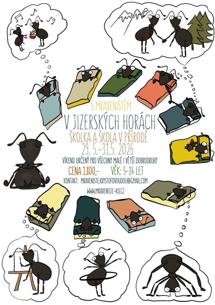 Cena 1800 Kč, věk 5 - 14 let. Kontakt: mraveniste.krystofoudoli@gmail.com. www.mraveniste-ku.cz.