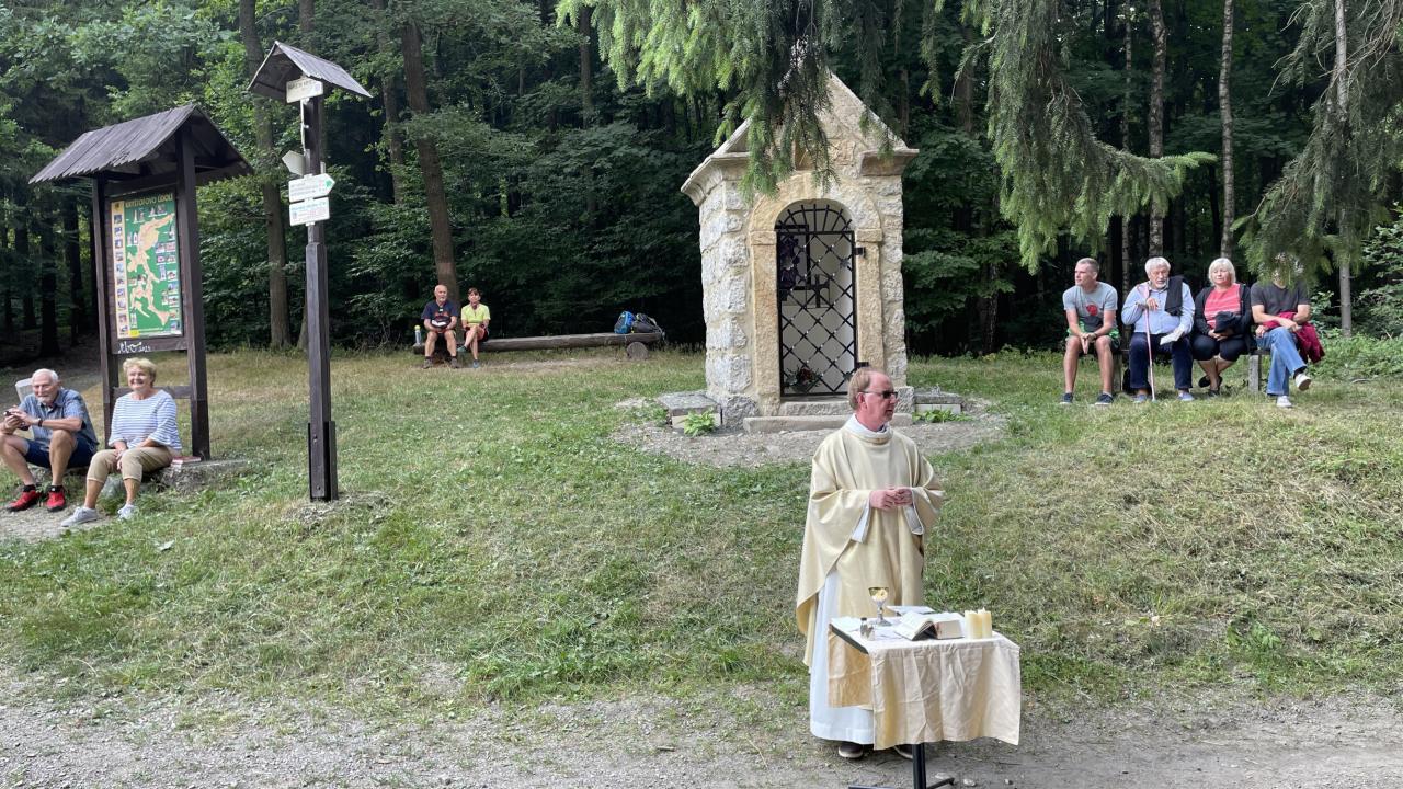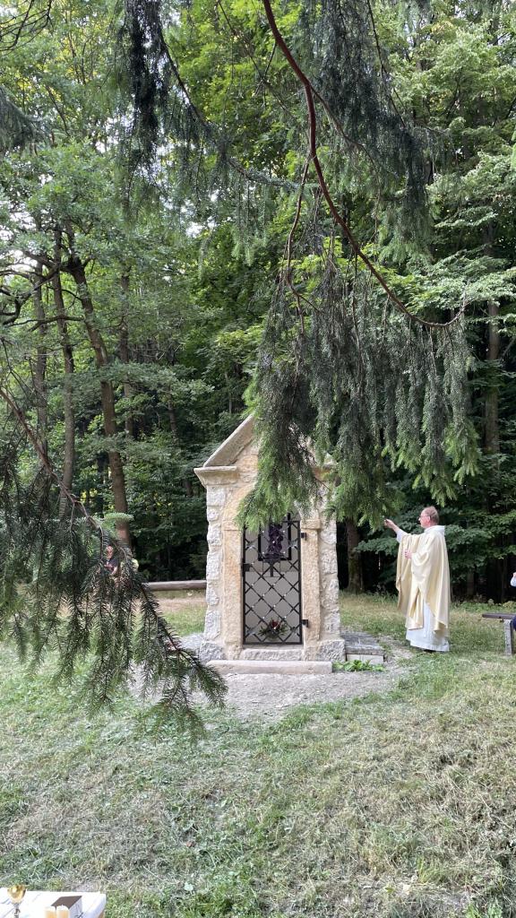 Žehnání opravené kaple sv. Kryštofa v lesích nad obcí. Kaple byla opravena s pomocí dotace Ministerstva zemědělství ČR v letošním roce. Tímto aktem byl zahájen poutní víkend.